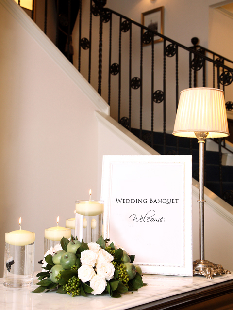 実は、会場もブーケのデザインを決める重要な要素となります。インテリアを含めた雰囲気、装花やテーブルアレンジなど、ブライダルデザインは、全てトータルで考えることが大切です。バランスがとれたシチュエーションの中でこそ、あなたの魅力がよりいっそう際立つチャンスなのです。ただし、この日の新婦の笑顔に勝るものはありません。