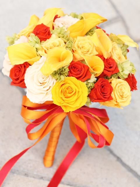 洋服にバッグを合わせるのと同様に、ドレスによってブーケの色やスタイルなど、デザインの大部分が決まると言っても過言ではありません。横や後ろ姿、さらには生地の素材や、ビーズ、 パール、リボンなどの装飾部分も分かると良いでしょう。新郎の写真も、ブートニアのデザインを決める上で必要です。せっかくの日ですから、カッコイイ彼の姿が見たいですもの。